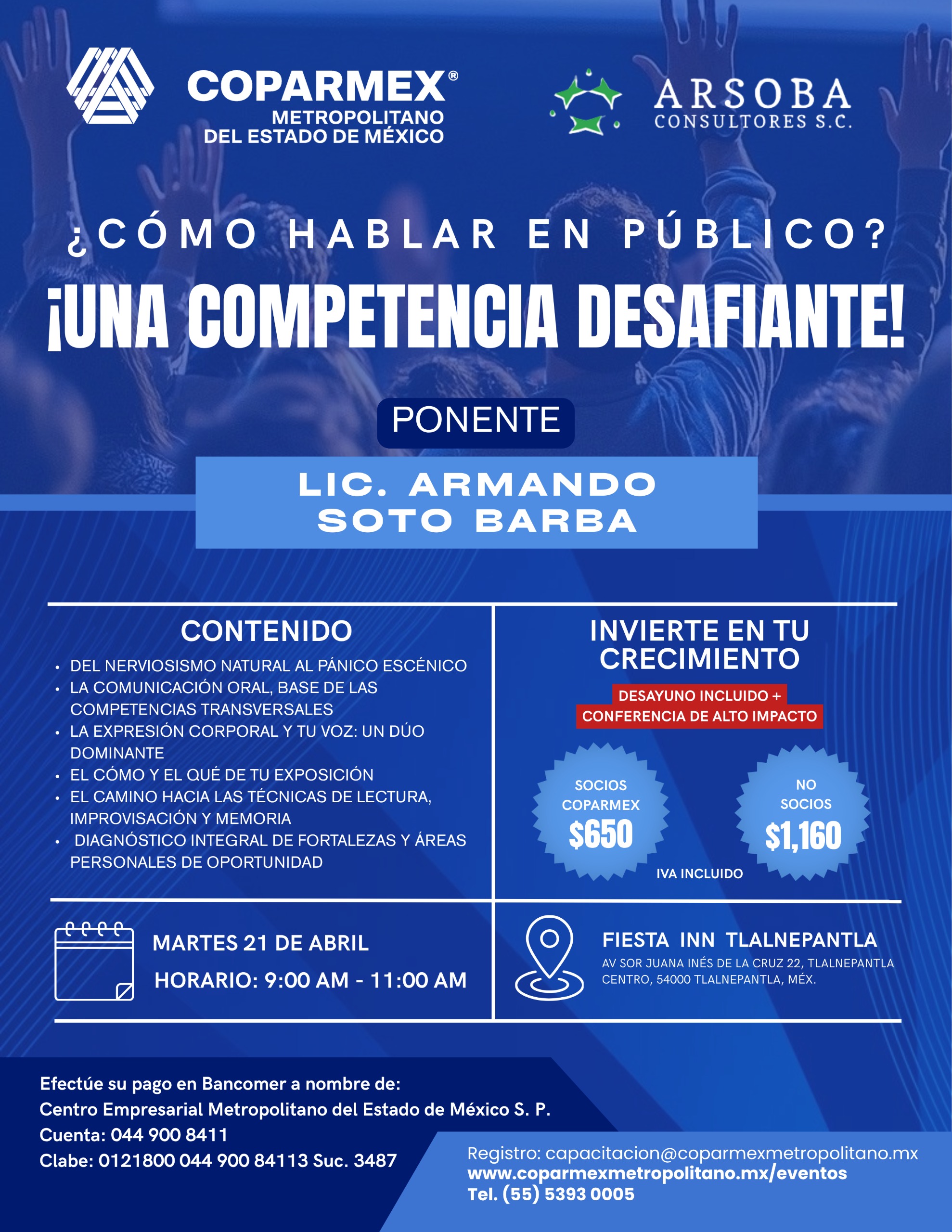 Costo no Socio Coparmex Incluye Desayuno: $1,160.00