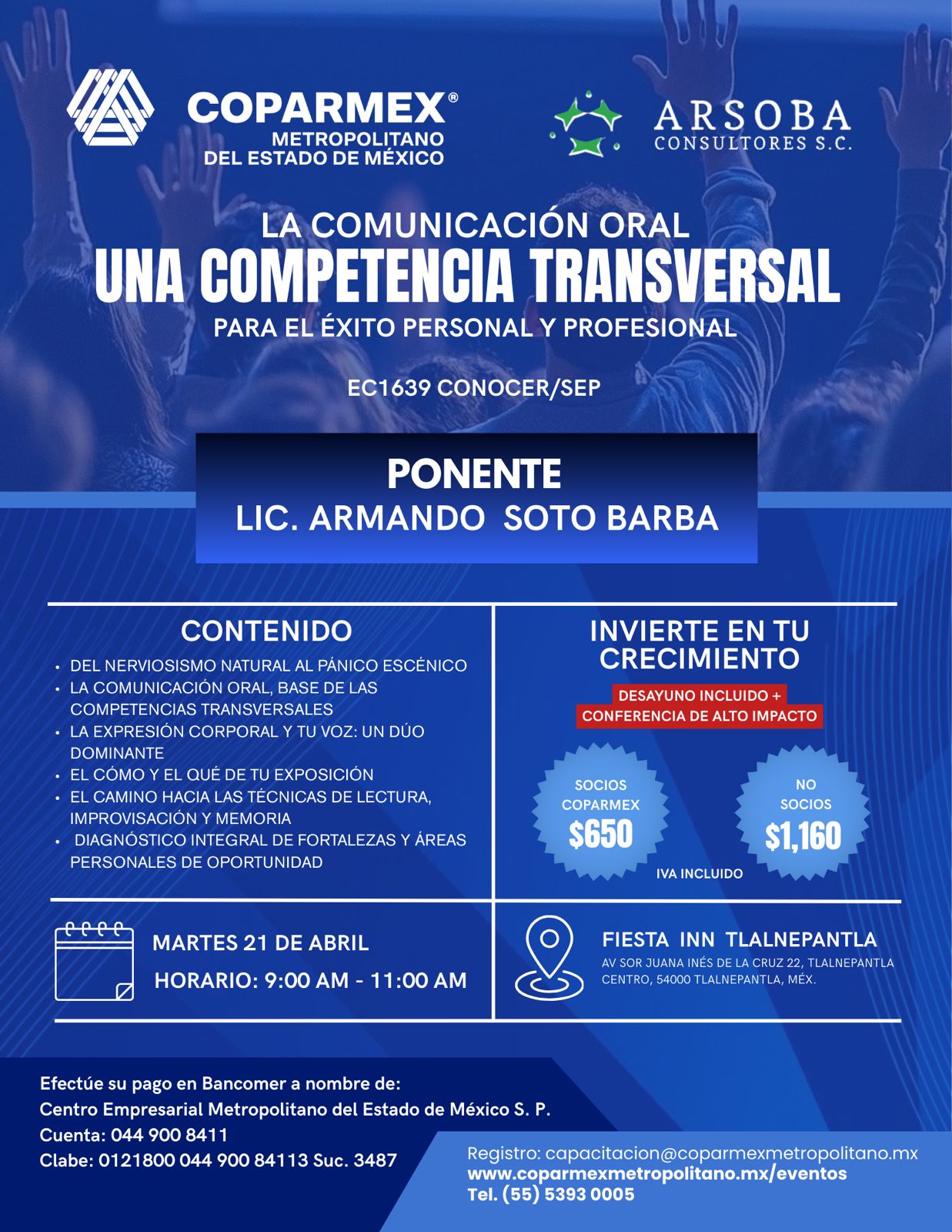 Costo no Socio Coparmex Incluye Desayuno: $1,160.00