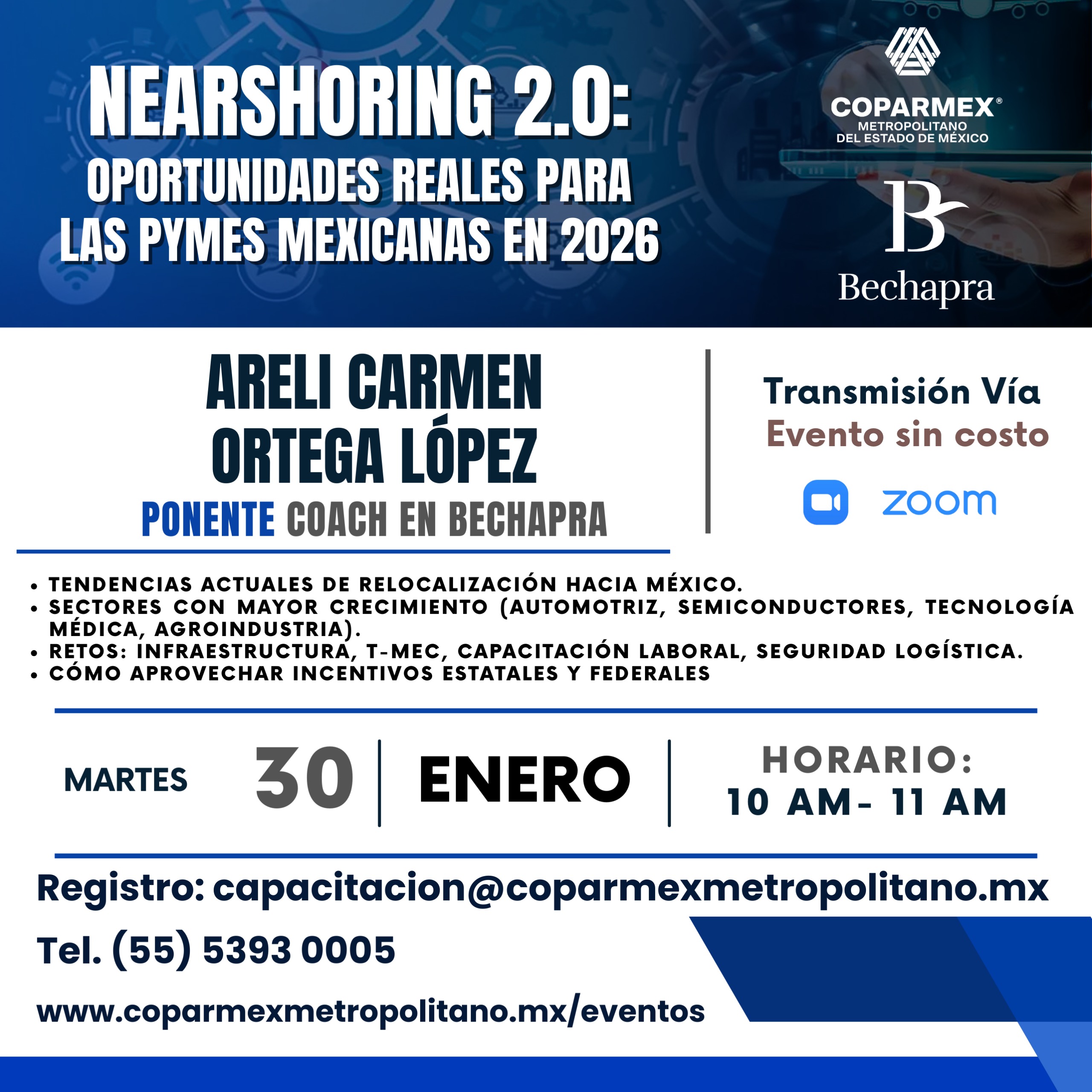 ¡ASEGURA TU LUGAR! La asistencia a este evento es de cupo limitado, por lo que te invitamos a registrarte lo antes posible. Una vez concluido el registro recibirás un correo electrónico con los detalles sobre tu participación.