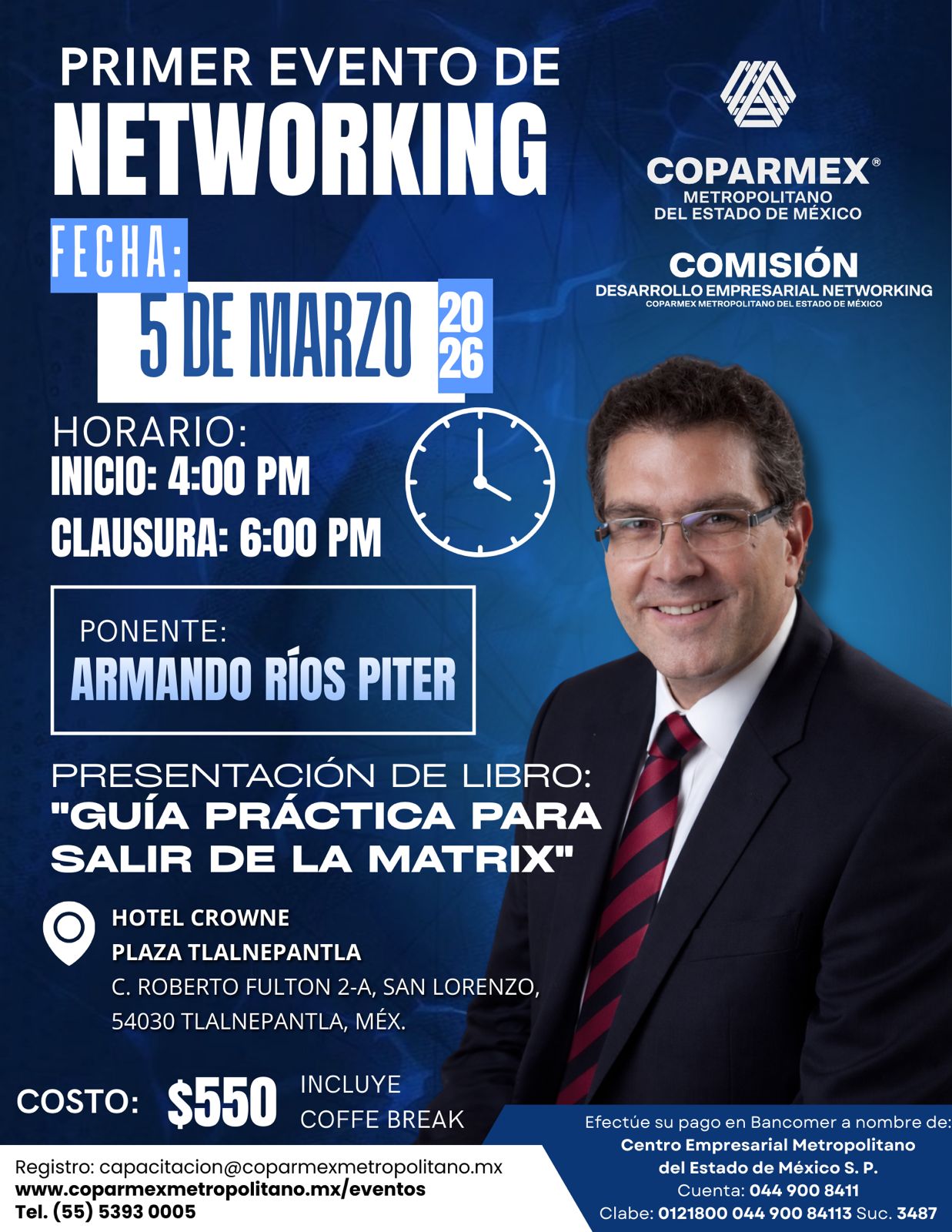 Costo por Persona Incluye Coffe Break: $550.00