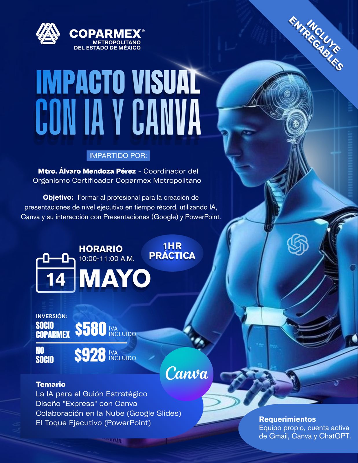Objetivo: Formar al profesional para la creación de presentaciones de nivel ejecutivo en tiempo récord, utilizando IA, Canva y su interacción con Presentaciones (Google) y PowerPoint
