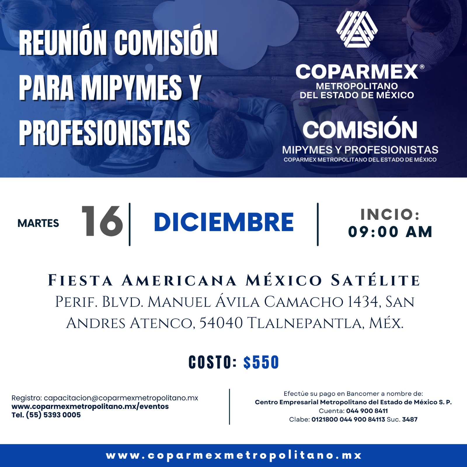 Costo Socios Coparmex Desayuno Incluido: $550.00